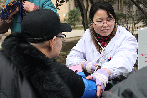 1月7日上午,我院組織專家隊伍來到花亭社區(qū)進行義診。
