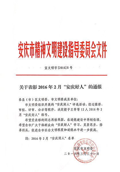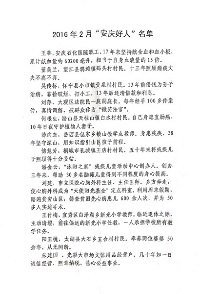 近日,我院醫(yī)教科王莘同志在市文明委組織開展的“安慶好人”評選活動中,因其17年來堅持獻全血和血小板,累計獻血60200毫升而榮獲“安慶好人”稱號。王莘同志在用鮮血挽救他人生命的同時,實現(xiàn)了自己的人生價值,她是我們的驕傲,更是我們學習的榜樣!