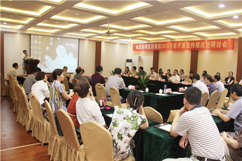 “醫(yī)療質(zhì)量的提高必不可少的一個環(huán)節(jié)就是不斷地學(xué)習(xí),要吸取別的地方好的經(jīng)驗,也要總結(jié)自身的優(yōu)勢和不足。我們開展了一系列的學(xué)習(xí)活動,包括8月26日舉行的‘南京鼓樓醫(yī)院集團2016年醫(yī)療質(zhì)量持續(xù)改進研討會’,是由我們承辦,南京金鼓公司主辦的,邀請了鼓樓醫(yī)院、宿遷醫(yī)院和儀征醫(yī)院部分領(lǐng)導(dǎo)和管理專家。旨在探討建立醫(yī)療質(zhì)量持續(xù)改進長效機制,確?;颊甙踩?,提高社會質(zhì)量滿意度。將健全組織、完善制度、優(yōu)化流程、全員培訓(xùn)、落實整改等措施,貫穿于基礎(chǔ)質(zhì)量管理、環(huán)節(jié)質(zhì)量控制和終末質(zhì)量評價等各個環(huán)節(jié),不斷提升醫(yī)院競爭力,促進科學(xué)健康發(fā)展?!被ń芨痹洪L如是說。