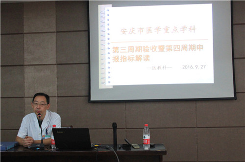 9月27日下午,我院舉辦市級醫(yī)學(xué)重點(diǎn)學(xué)科評審培訓(xùn)會,花杰副院長主持,周長江院長、汪文曉副院長到會。醫(yī)教科作評審指標(biāo)解讀專題報告,臨床科室踴躍參加。