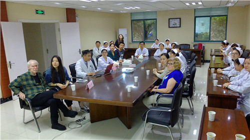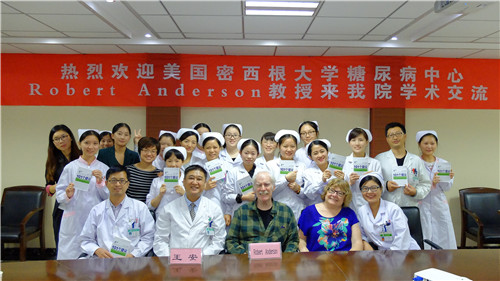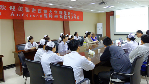 當天下午下著蒙蒙細雨,RobertAnderson教授一行首先參觀了我院糖尿病宣教室,并對糖尿病宣教設(shè)施給予了高度評價和贊揚。隨后,在我院會議室開展院內(nèi)學術(shù)會,就國際流行的糖尿病授權(quán)教育的理論研究和實際應用展開了熱烈的專題討論和交流。