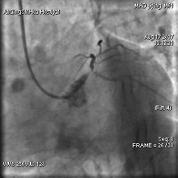 毛先生的血管在心臟左主干體部及分叉部都出現(xiàn)嚴重狹窄,僅一絲血流通過,前降支的血流已明顯減慢。難怪日常步行都會引起心絞痛,毛先生隨時都可能心臟驟停。