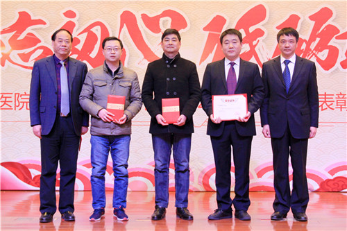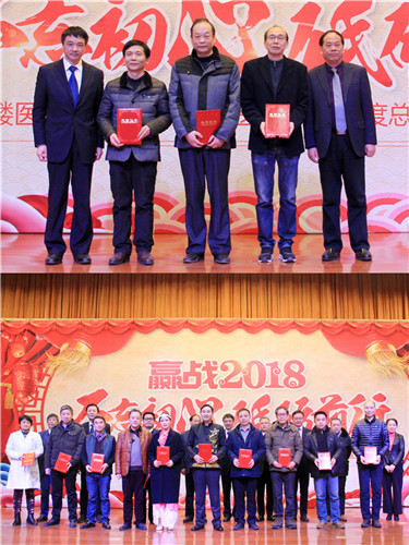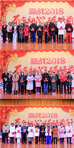 陳勝書記宣讀新工集團優(yōu)秀員工、金陵藥業(yè)優(yōu)秀管理者、優(yōu)秀員工、文明班組、市級和院級重點學科名單,以及醫(yī)院《關于表彰2017年度先進集體和先進個人的通報》,9名院領導為先進個人、集體現(xiàn)場頒獎,號召全院員工向先進個人學習,向重點科室看齊,立足崗位,創(chuàng)先爭優(yōu)。