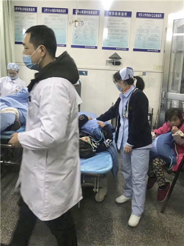 “我們家煤氣中毒了,快來救救我們!”2月6日晚9點(diǎn),急診科醫(yī)護(hù)接120電話,立即帶上急救設(shè)備趕赴現(xiàn)場(chǎng)。兩名女患者已昏迷暈倒在地,三名兒童及一名男士都有不同程度的中毒癥狀。情況緊急,急救人員經(jīng)驗(yàn)豐富,打開門窗,將患者移至空氣流通處,給予吸氧等救治措施后立即開始轉(zhuǎn)運(yùn)。人數(shù)多,病情重,在沒有外援的情況下,大家齊心協(xié)力,醫(yī)生張榮桂和擔(dān)架員一起將一名昏迷女患者抬至救護(hù)車上,駕駛員張偉背上另外一名昏迷女患者就往樓下沖,護(hù)士石嘉麗抱上孩子也緊隨其后,張偉還細(xì)心地將自己的棉襖給孩子穿上,僅僅十分鐘就將患者全部轉(zhuǎn)送至醫(yī)院。