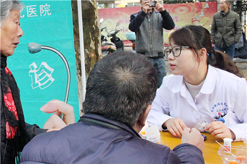 我院團委組織青年醫(yī)護志愿者為社區(qū)居民量血壓、測血糖、開展健康咨詢。免費量血壓400余人次、測血糖200余人次;發(fā)放健康宣教資料,結合個人情況,叮囑日常注意事項,耐心指導疾病預防;遇到熟悉的病人,不忘關心他們最近的身體狀況;對于病情較重的患者登記相關信息,并建議其到醫(yī)院作進一步診治。