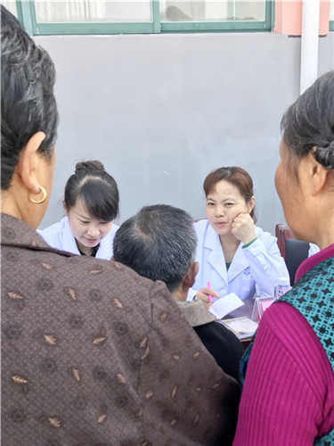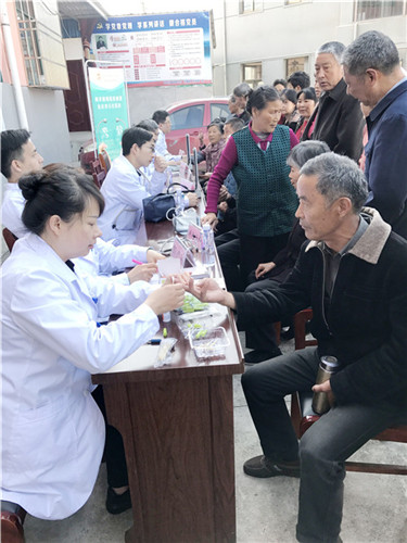 車行1個(gè)多小時(shí)到達(dá)義診現(xiàn)場(chǎng),他們手腳麻利地穿上工作服迅速進(jìn)入工作狀態(tài),為早已等候多時(shí)的村民量血壓、測(cè)血糖、問(wèn)診、把脈、開(kāi)處方,并耐心解答村民的各種健康問(wèn)題,給予科學(xué)的飲食建議,讓大家及時(shí)了解自己的身體狀況及相關(guān)疾病的預(yù)防。