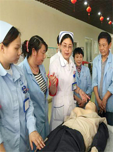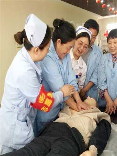 志愿者還對敬老院的護理員們進行了心肺復(fù)蘇和誤吸的急救處理技能培訓(xùn)及老年護理健康宣教,護理員們認真學(xué)習(xí)并積極參與模型練習(xí),現(xiàn)場氣氛活躍。