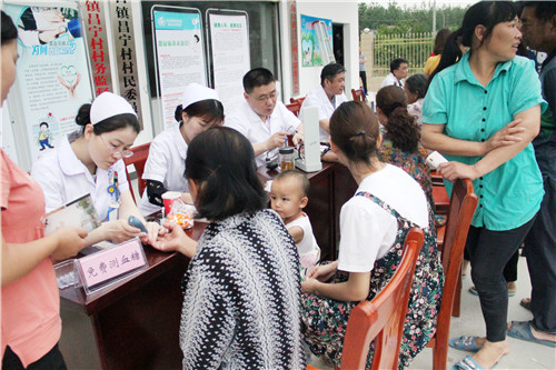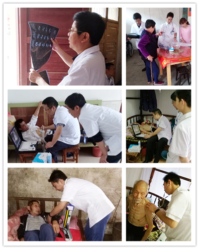 醫(yī)療隊隨即兵分兩路,一隊深入10余戶貧困戶及村民家中,進行B超、心電圖等免費健康體檢、調(diào)查了解社情民意;另一隊現(xiàn)場開展義診,為100多位村民進行健康咨詢,建立健康檔案,免費測血糖、量血壓、發(fā)放健康宣教資料。