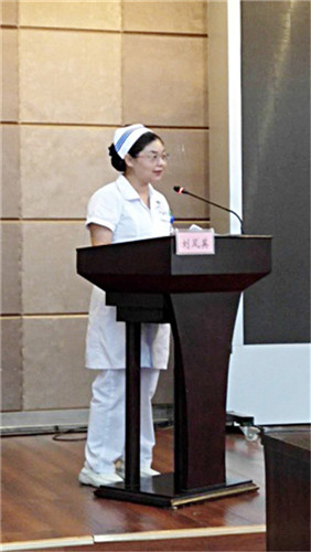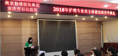 護(hù)理部主任劉風(fēng)英代表醫(yī)院對新生表示熱烈歡迎并致辭?;厥走^去的三年,學(xué)校和醫(yī)院師生們精誠團(tuán)結(jié),收獲了碩果與感動(dòng),院校領(lǐng)導(dǎo)和全體師生們共同經(jīng)歷了護(hù)理教改班從最初的磨合、適應(yīng)到后來的默契、親密。她勉勵(lì)同學(xué)們要更加奮發(fā)努力,腳踏實(shí)地,修身自律,勇爭上游,用優(yōu)異的的成績回報(bào)院校領(lǐng)導(dǎo)及老師。