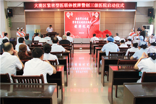 政府與國企合作共建醫(yī)聯(lián)體,在我市尚屬首次。7月31日簽約,9月20日掛牌,在不到短短的兩個月時間里,醫(yī)聯(lián)體成員單位密集磋商、建章立制,“大觀模式”跑出了“加速度”,醫(yī)聯(lián)體建設邁出了實效性步伐。