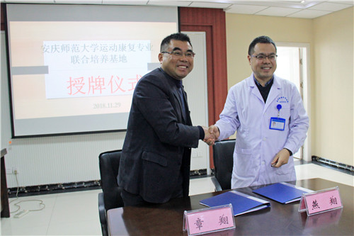 安慶師范大學(xué)于2017年成功獲批本科運(yùn)動(dòng)康復(fù)專業(yè)并順利招生,著力培養(yǎng)具有一定發(fā)展?jié)摿皠?chuàng)新精神、具有較強(qiáng)實(shí)踐能力的物理治療師和運(yùn)動(dòng)損傷防護(hù)師。安慶師范大學(xué)副校長(zhǎng)張群表示,聯(lián)合培養(yǎng)基地的成立,將對(duì)學(xué)校運(yùn)動(dòng)康復(fù)專業(yè)人才培養(yǎng)工作發(fā)揮良好的促進(jìn)作用,并帶動(dòng)安慶乃至安徽康復(fù)醫(yī)療事業(yè)的發(fā)展。校方將獲得石化醫(yī)院優(yōu)質(zhì)資源,致力于人才培養(yǎng)質(zhì)量,提高學(xué)生理論與實(shí)踐相結(jié)合的能力,以造就大批優(yōu)秀康復(fù)人才。