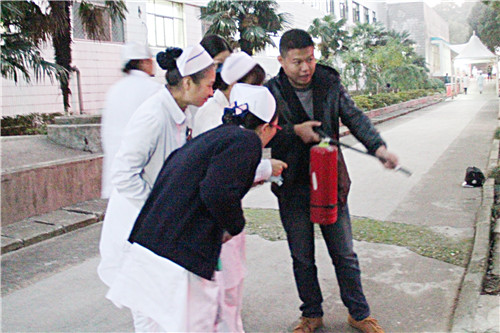 許海洋教官根據(jù)醫(yī)院火災(zāi)的特點(diǎn),結(jié)合實(shí)際火災(zāi)反面案例,重點(diǎn)講解了如何開展消防隱患排查、火災(zāi)初起階段的撲救方法、火場(chǎng)內(nèi)如何逃生自救、如何進(jìn)行火災(zāi)初期撲救、消防器材如何操作使用等消防安全知識(shí)。隨后,現(xiàn)場(chǎng)示范如何使用滅火器撲滅初期火災(zāi),并讓參會(huì)人員實(shí)地操作滅火器材,親身了解滅火注意事項(xiàng),切實(shí)使醫(yī)護(hù)人員了解火災(zāi)危險(xiǎn)性,懂得基本消防常識(shí),學(xué)會(huì)報(bào)警、撲救初期火災(zāi)和組織人員疏散。