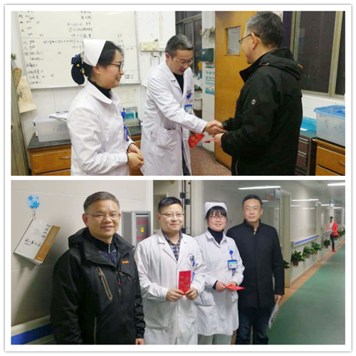 大年三十,院領導來到病房,慰問除夕夜依然堅守在崗位上的他們。