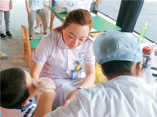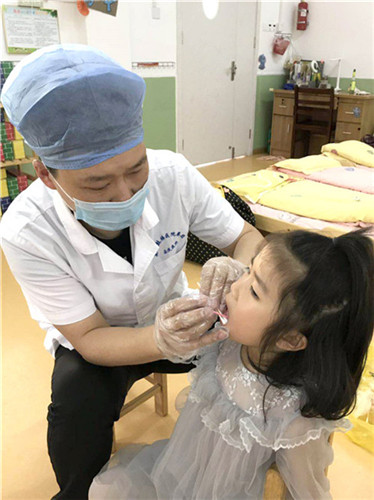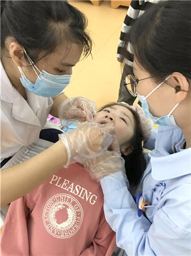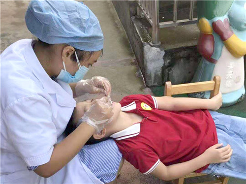此次兒童口腔疾病綜合干預(yù)工作初期,醫(yī)教科積極聯(lián)絡(luò)校方,完善口腔科網(wǎng)絡(luò)配置,為后續(xù)項(xiàng)目實(shí)施打下堅(jiān)實(shí)基礎(chǔ)。因口腔科人員緊缺,門(mén)診部主動(dòng)請(qǐng)纓協(xié)助完成幼兒園涂氟工作。門(mén)診部護(hù)士長(zhǎng)鄭潔帶領(lǐng)口腔科醫(yī)護(hù),在“外援”大外科護(hù)士長(zhǎng)程宜池和急診科副護(hù)士長(zhǎng)石嘉麗的幫助下,有序高效完成任務(wù),共計(jì)為大觀區(qū)九所幼兒園 912 名兒童開(kāi)展口腔檢查及涂氟工作,溫柔的白衣天使也深受小朋友們的喜愛(ài)。項(xiàng)目實(shí)施的同時(shí),護(hù)士姚衛(wèi)霞主動(dòng)承擔(dān)起信息整理及上報(bào)工作,網(wǎng)報(bào)信息耗時(shí)費(fèi)力,她常常在電腦前一忙就是一天。