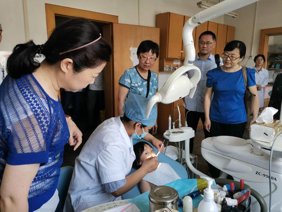 項(xiàng)目進(jìn)行中,省兒童口腔疾病綜合項(xiàng)目辦專(zhuān)家及省衛(wèi)健委疾控處處長(zhǎng)王海一行 6 人,對(duì)大觀區(qū) 2018 年度全國(guó)兒童口腔疾病綜合干預(yù)項(xiàng)目實(shí)施情況進(jìn)行了督查,我院院長(zhǎng)周長(zhǎng)江、醫(yī)教科科長(zhǎng)吳彥農(nóng)、口腔科主任牛躍陪同督查。牛躍主任向?qū)<医M匯報(bào)了項(xiàng)目進(jìn)展情況,專(zhuān)家組一行也來(lái)到口腔科門(mén)診現(xiàn)場(chǎng)了解兒童涂氟和窩溝封閉操作,查閱相關(guān)資料,并指導(dǎo)工作開(kāi)展。隨后,專(zhuān)家組還前往石化三小,隨機(jī)抽查了部分學(xué)生窩溝封閉質(zhì)量實(shí)施情況,充分肯定了窩溝封閉效果。