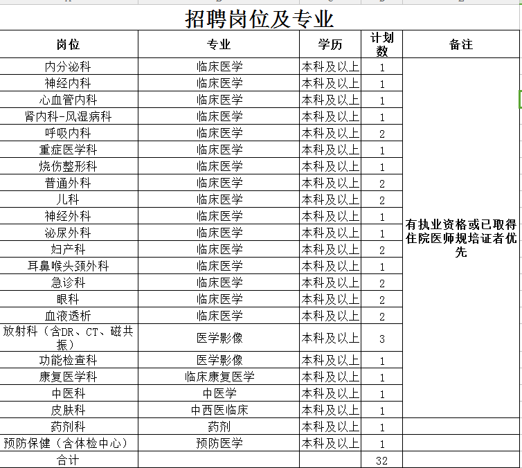 因工作需要,經(jīng)研究,我院決定公開招聘 32名衛(wèi)生專業(yè)技術(shù)人員?,F(xiàn)將有關(guān)事項通知如下: